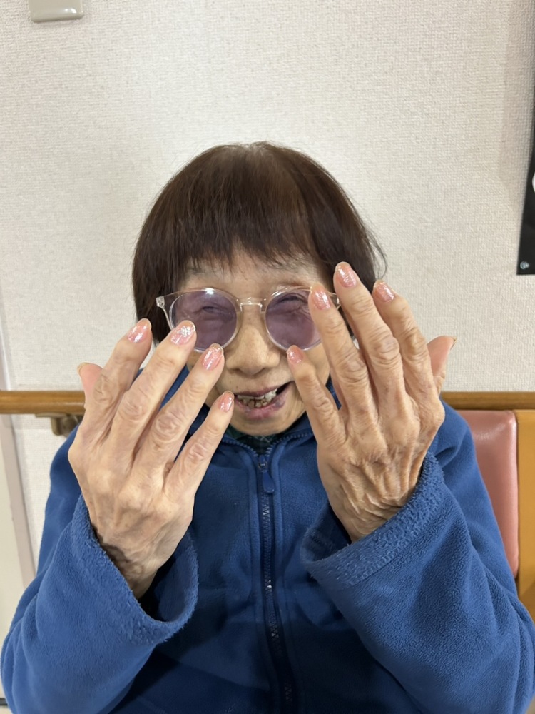アロマテラピー他レクリェーションとして催しをしております。 手のお手入れをしていただき満面な笑顔です。